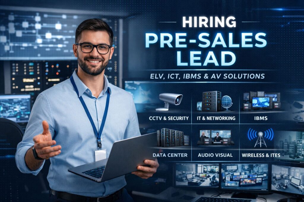 Position : Presales Lead Department : Projects / Technical Services Industry : ELV, ICT, CCTV, ACS, AV,FAS, PAS, Audio Visual& IT/ITeS